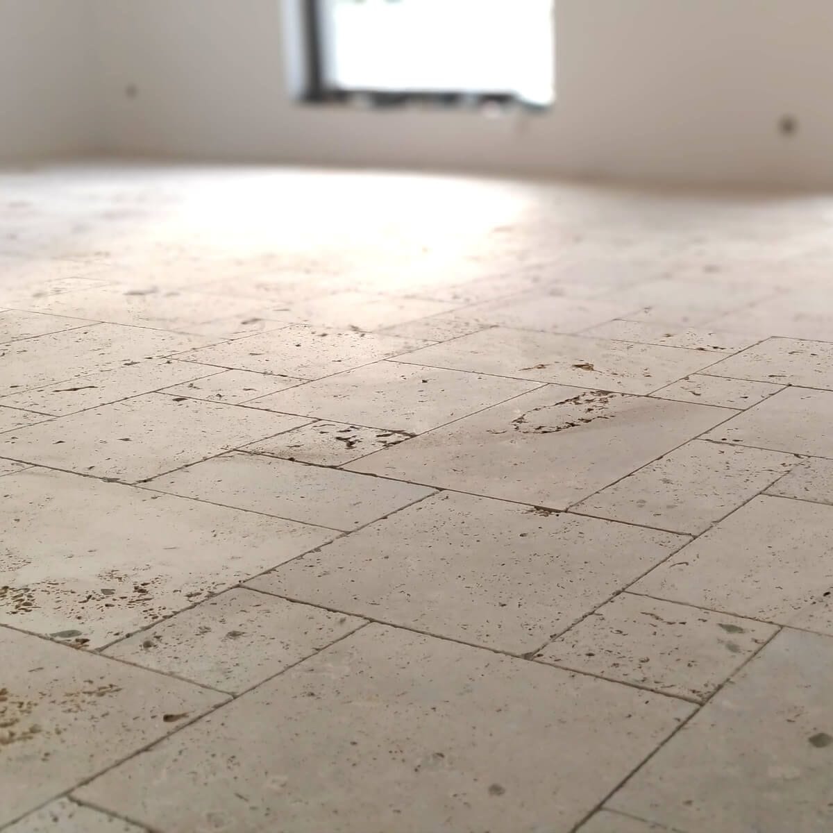 Opornik z trawertynu w wykończeniu szlifowanym, gładkim. Krawędzie są delikatnie bębnowane.